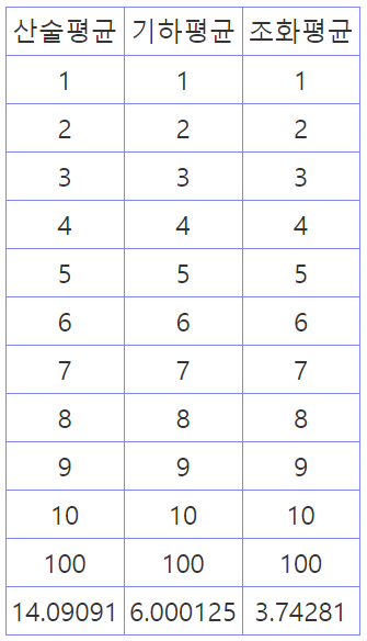 평균의 종류(산술평균, 기하평균, 조화평균)