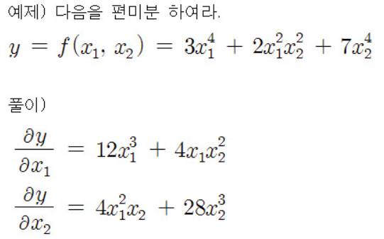 - 편미분은 한쪽에 편중해서 미분하겠다라는 의미